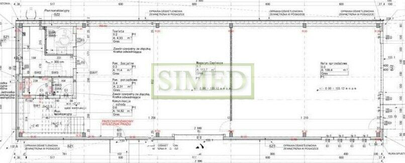 109,4 m² , magazynu pow. 113,7 m² ,pomieszczenia socjalnego pow.