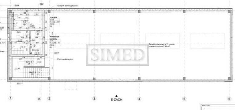 Piętro to powierzchnia biurowa ok. 16,4 m², WC z prysznicem 9,2 m²